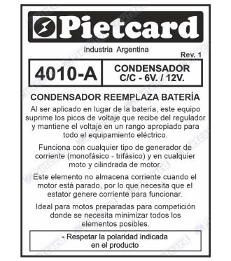 4010-A CONDENSADOR C/C 6V-12V REEMPLAZA BATERIA