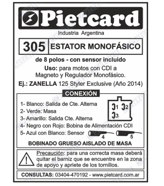 0305 ESTATOR MONOF. 8 POLOS CONEX. MAZ ZAN 125 STYLER