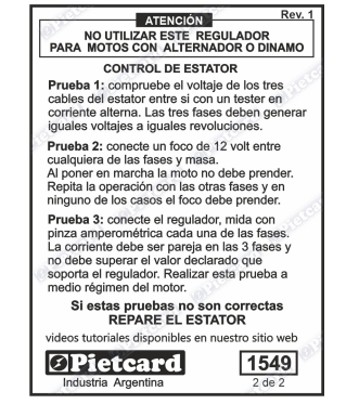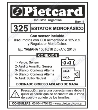 0325 ESTATOR MONOF. 12 POLOS AIS. MAZ YAMAHA 16 FZ 2.0