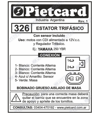 0326 ESTATOR MONOF. 18 POLOS AIS. MAZ YAMAHA 250 YBR