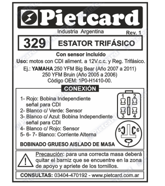 0329 ESTATOR MONOF. 18 POLOS AIS. MAZ YAMAHA 250 YFM