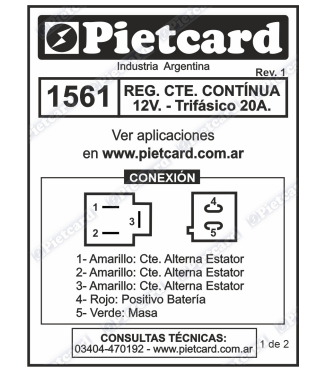 1561 REGULADOR KYMCO 125/200/300/500 TRIF. 20 A