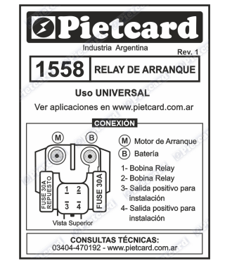 1560 RELAY DE ARRANQUE UNIVERSAL S/ FUSIBLE BENELLI